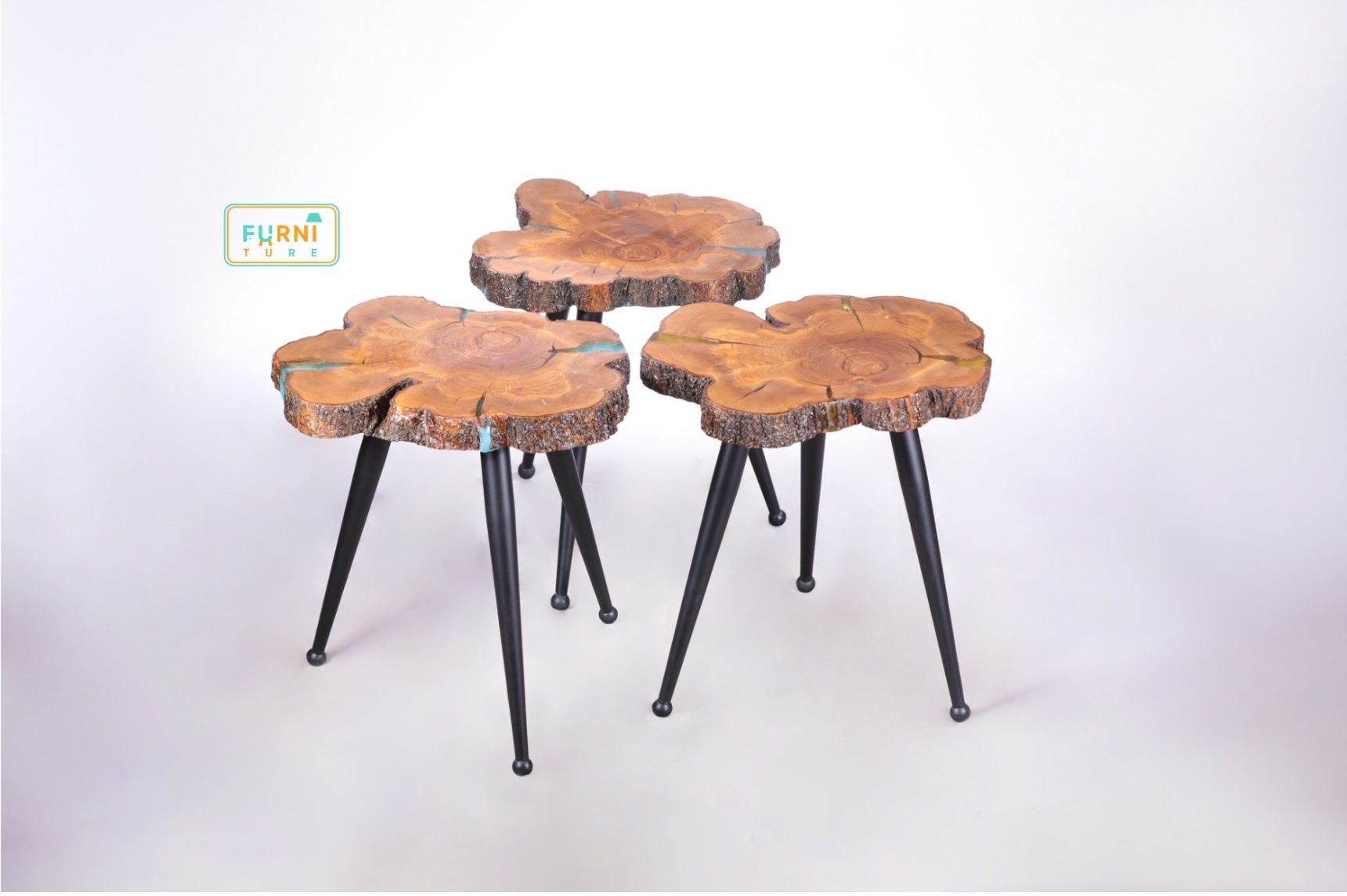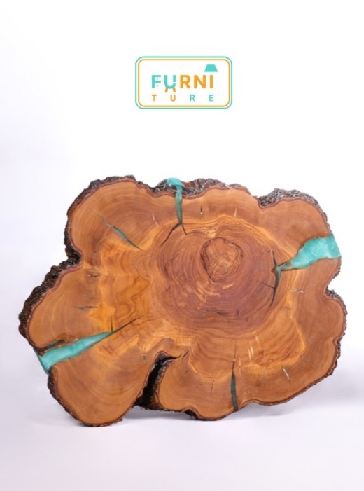 پر کردن ترک چوب با رزين شفاف، عمق پوشی شده با رزين رنگی و شب تاب.، رنگ فیروزه ای و رزين کف، سطح چوب قابل لمس